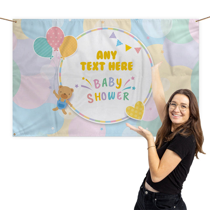 This Baby Shower personalised photo banner is a great addition to your upcoming Baby Shower party, or any other occasion! Edit the text to reflect your occasion or share a personal message, ready to welcome the new baby!