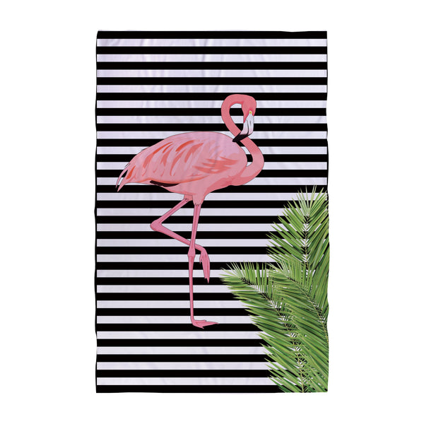 Personalised Lightweight, Microfibre Large Beach Towel - Flamingo Black Stripes