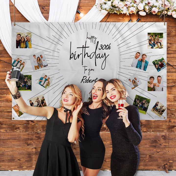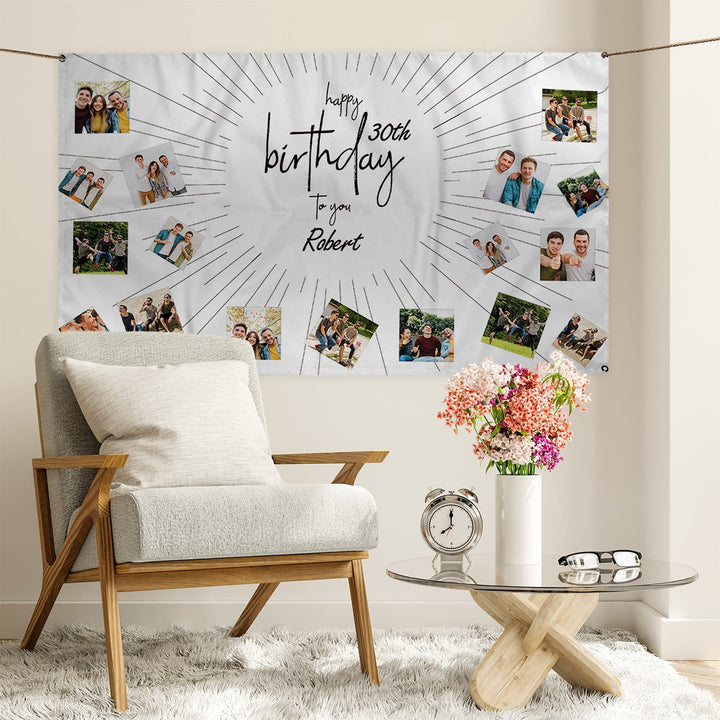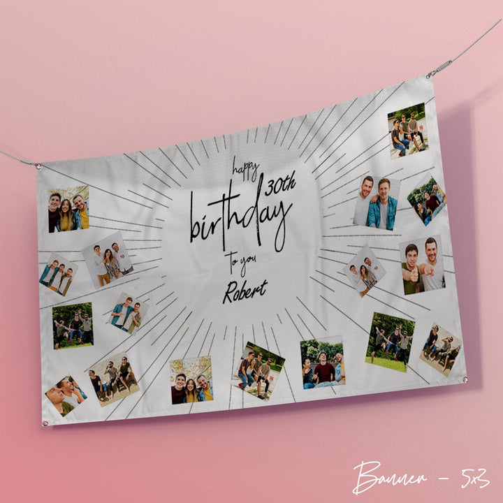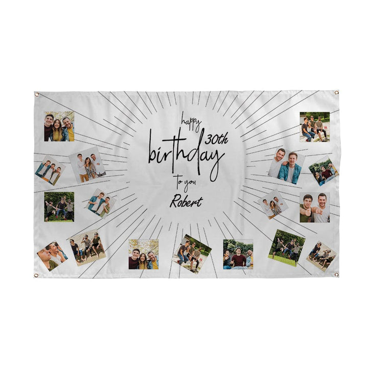 Personalised 30th Birthday BannerBirthday Rays Banner - Add Your Name and Birthday - 5ft x 3ft