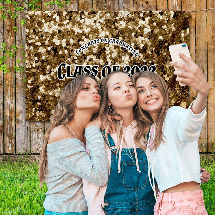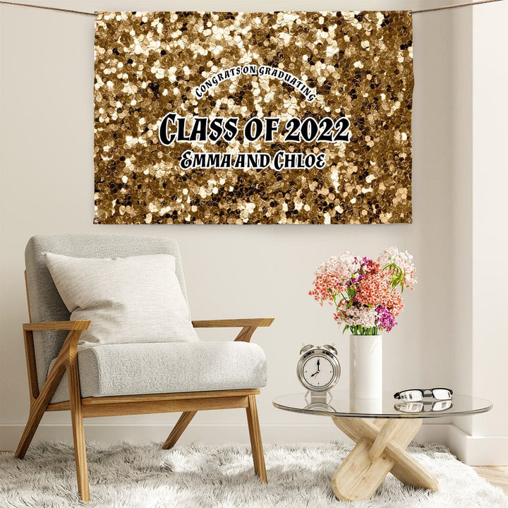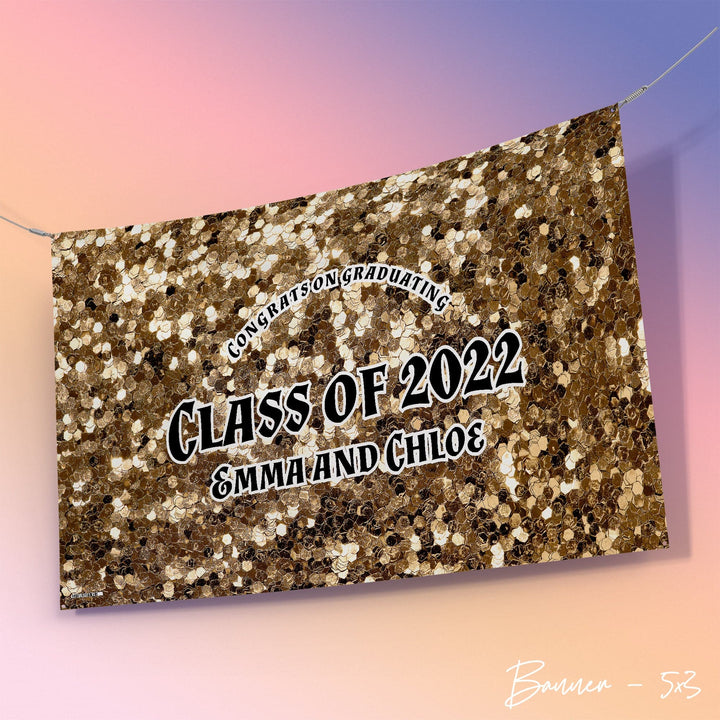 Personalised Any Text - Gold Printed Glitter Party Backdrop - 5ft x 3ft