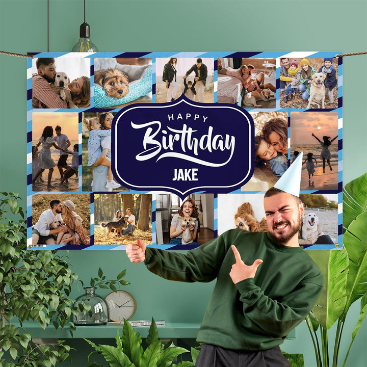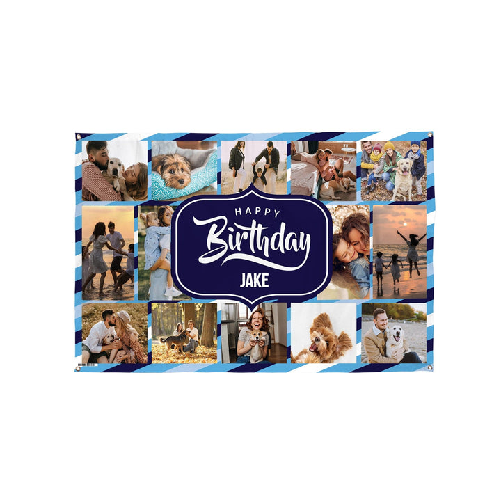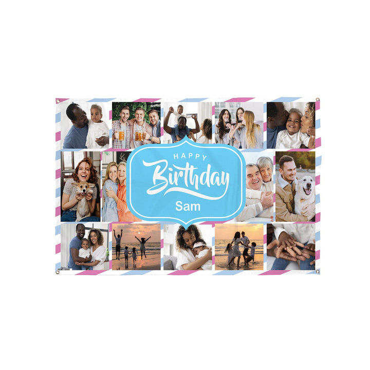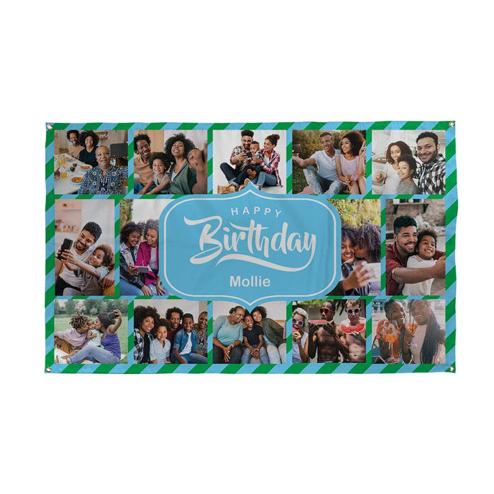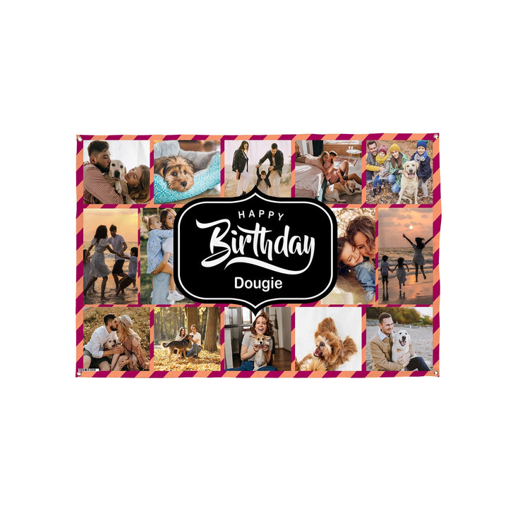 This personalised Happy Birthday photo banner is a great addition to your upcoming event! Suitable for any occasion, you can edit the text to reflect your celebration or share a personal message and add your most cherished photos. Also, choose from 5 different coloured backgrounds.
