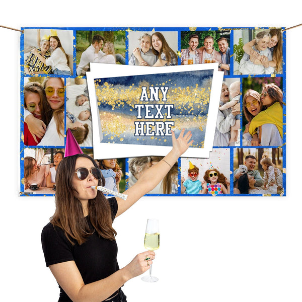 Fabric Any Occasion Photo Banner - Gold Glitter - Edit Text - 3 Sizes