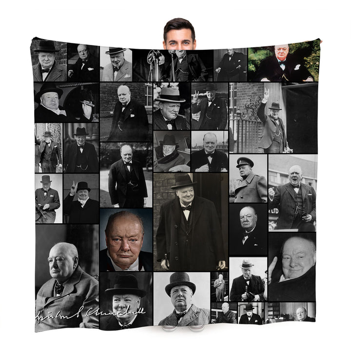 Winston Churchill Montage Celebrity Fleece Throw - Large Size 150cm x 150cm