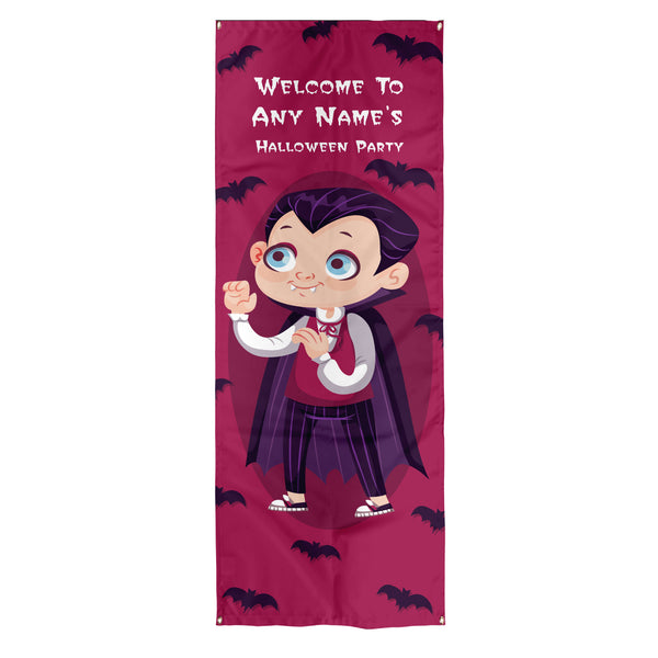 Personalised Text - Cartoon Vampire Boy - Halloween Wall Art Banner