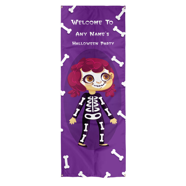 Personalised Text - Cartoon Skeleton Girl - Halloween Wall Art Banner