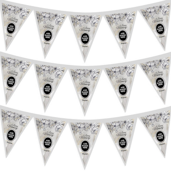 Personalised In Loving Memory - Grey Marble - 3m Fabric Bunting With 15 Individual Triangles