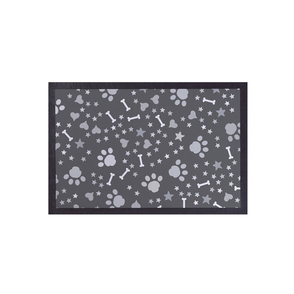 Personalised Pet Bowl Mat - Paw Prints Grey