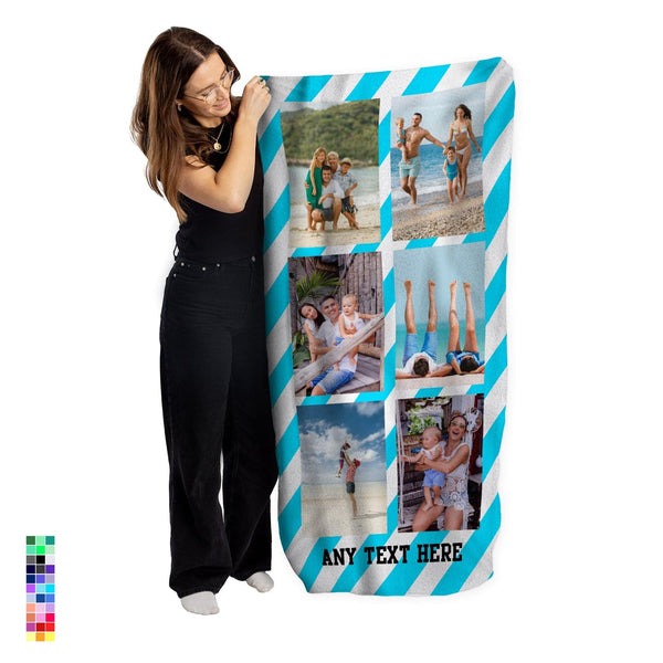 Personalised Lightweight, Microfibre Beach Towel - Any Colour - Diagonal Stripe - 8 Portrait Photos