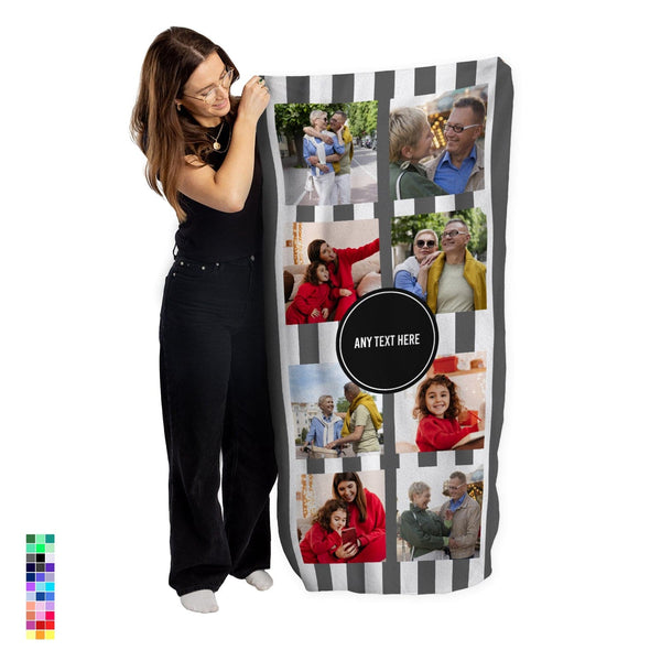Personalised Lightweight, Microfibre Beach Towel - Any Colour - Stripe - 8 Square Photos