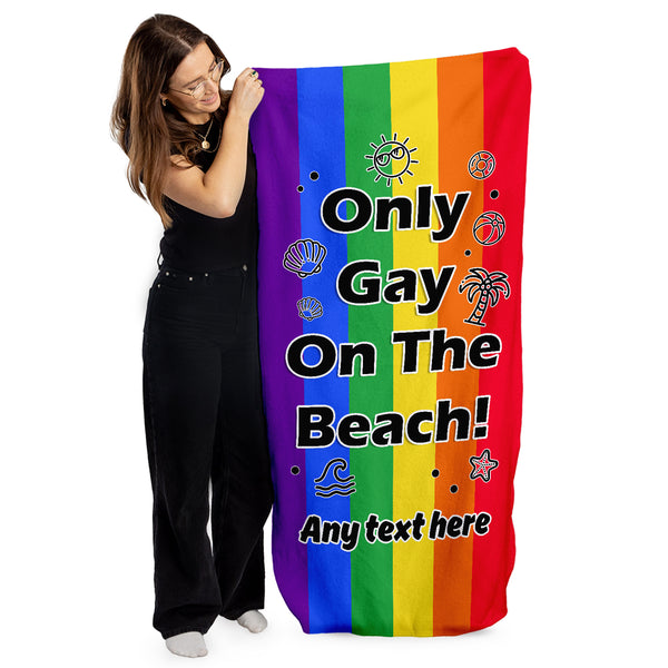 Only Gay On the Beach - Rainbow Personalised Beach Towel - 150CM X 75CM