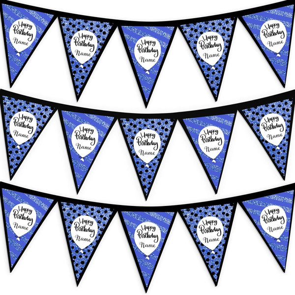 Personalised Birthday Blue Printed Glitter - 3m Fabric Photo Bunting With 15 Individual Triangles