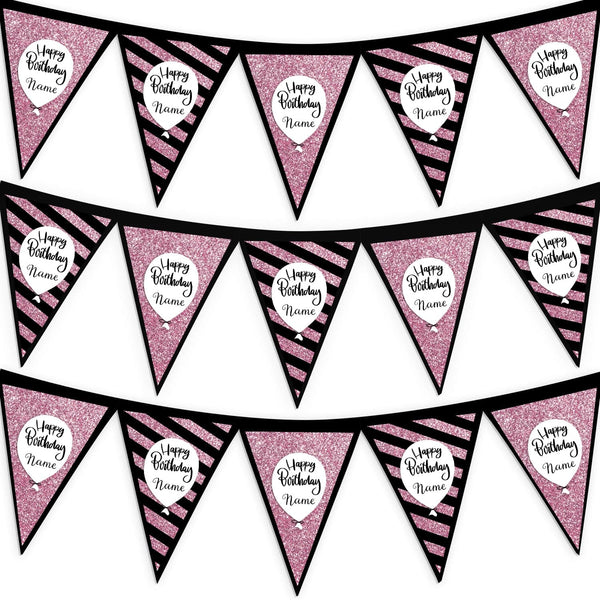 Personalised Birthday Pink Printed Glitter - 3m Fabric Bunting With 15 Individual Triangles