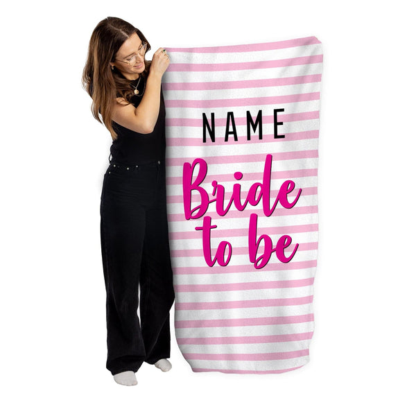 Personalised Lightweight, Microfibre Beach Towel - Bride To Be - Pink Stripe