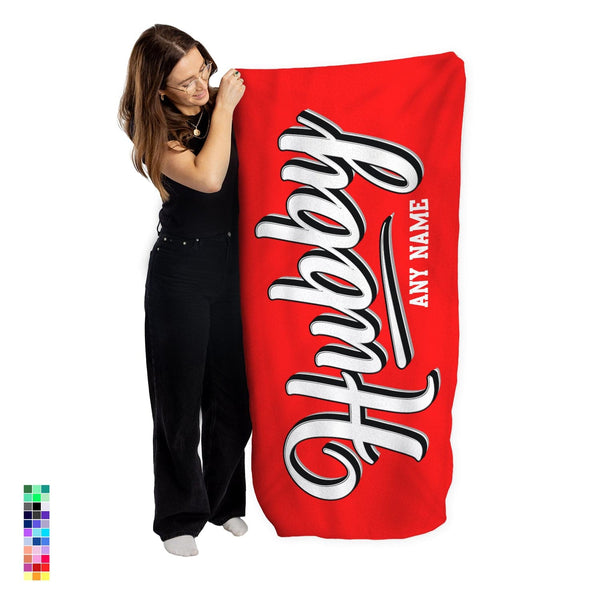 Personalised Lightweight, Microfibre Beach Towel - Customisable Colour - Hubby