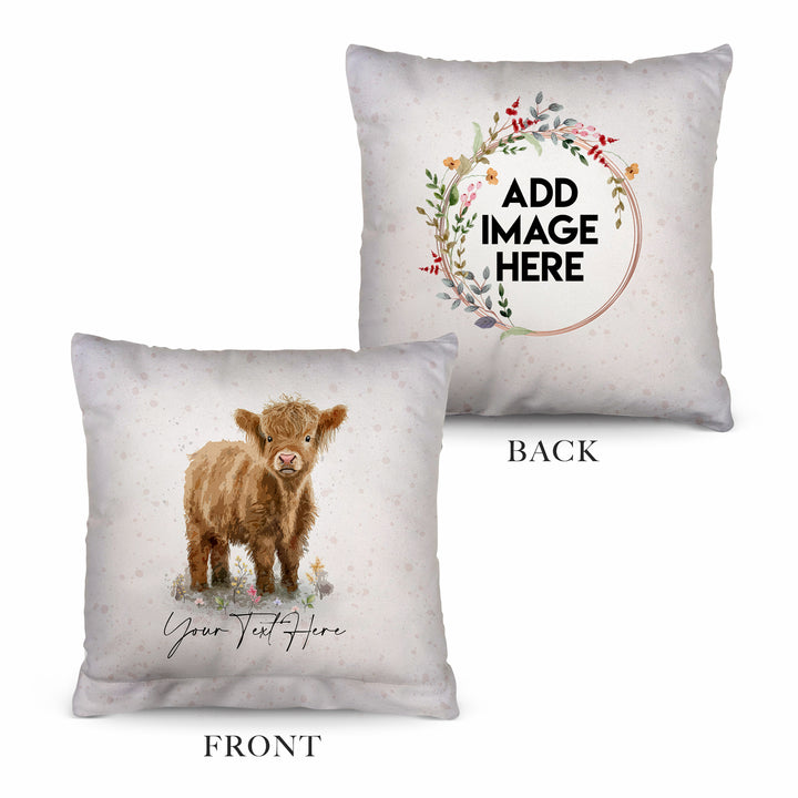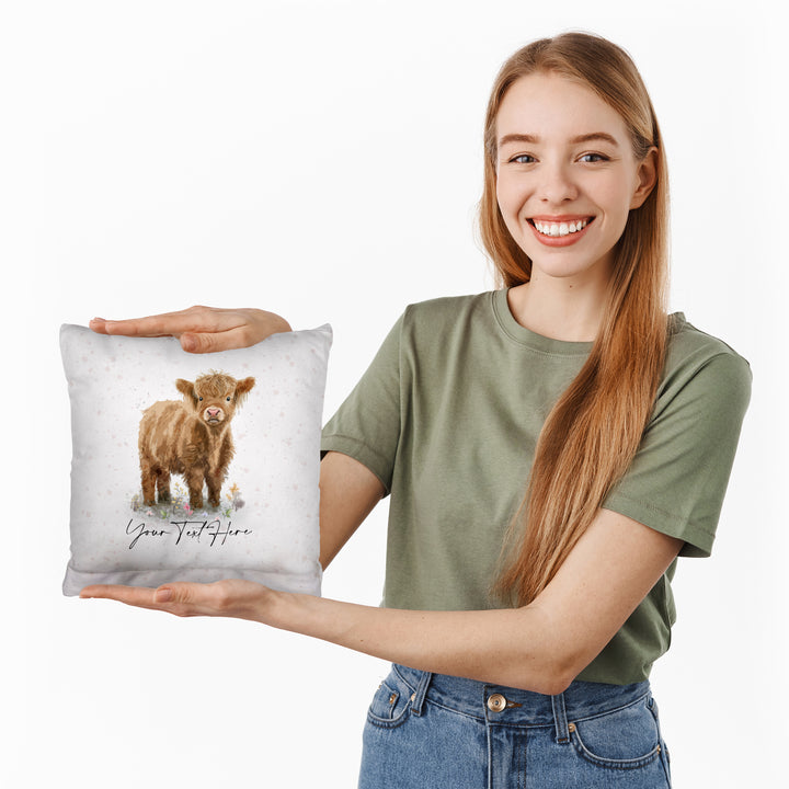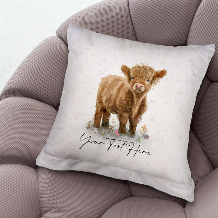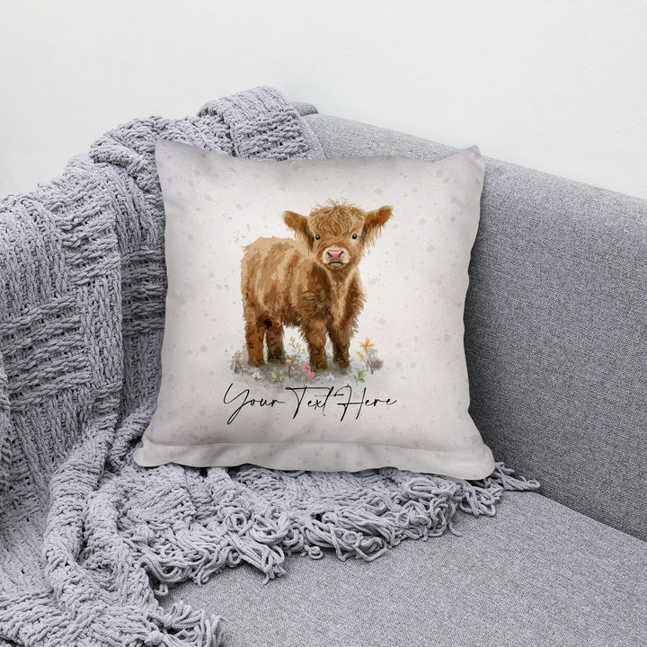 Baby Highland Cow - 26cm x 26cm - Personalised Cushion