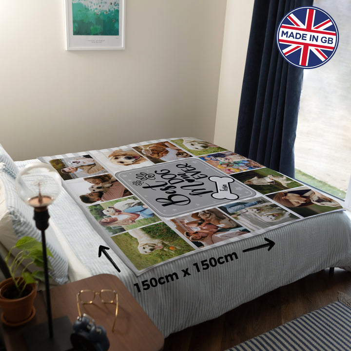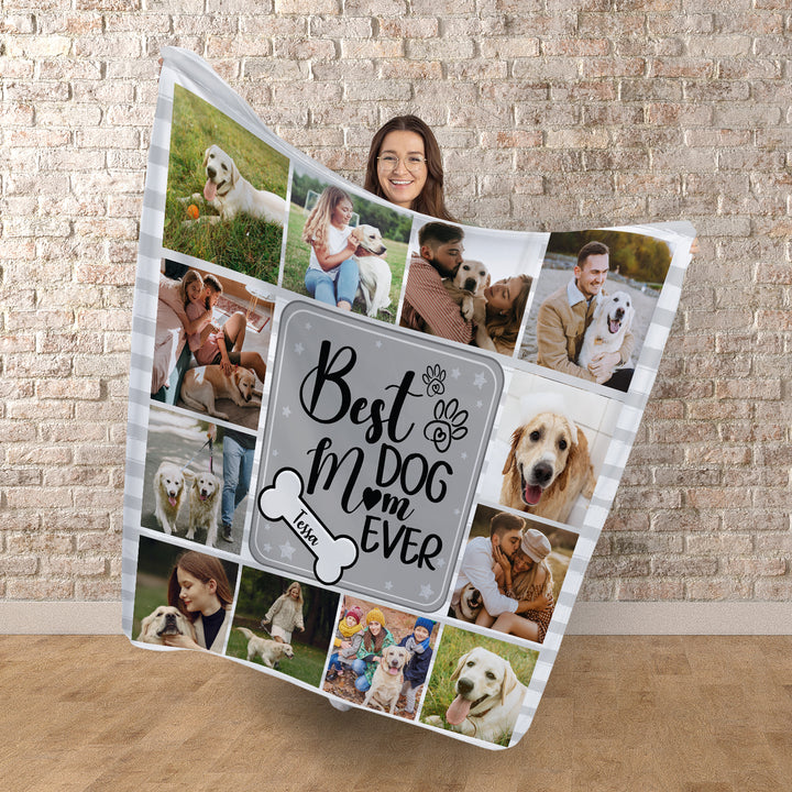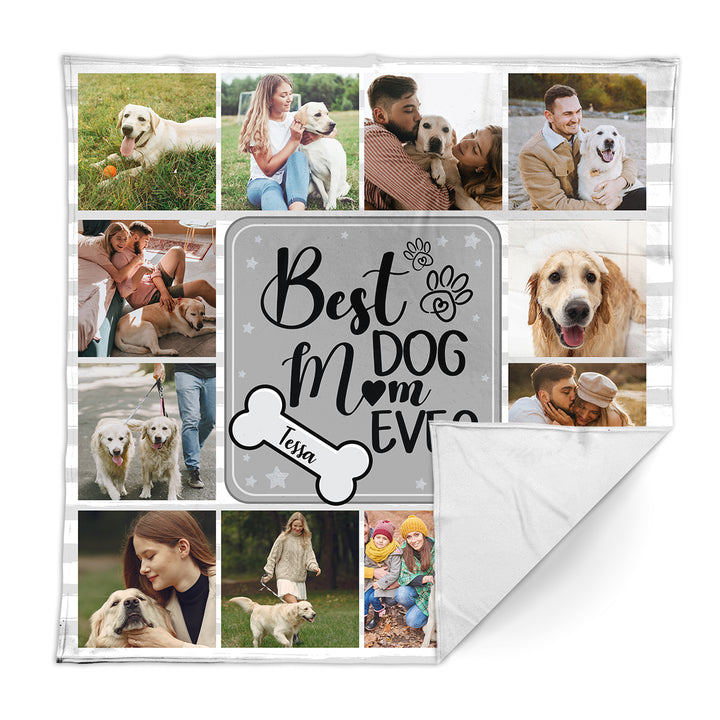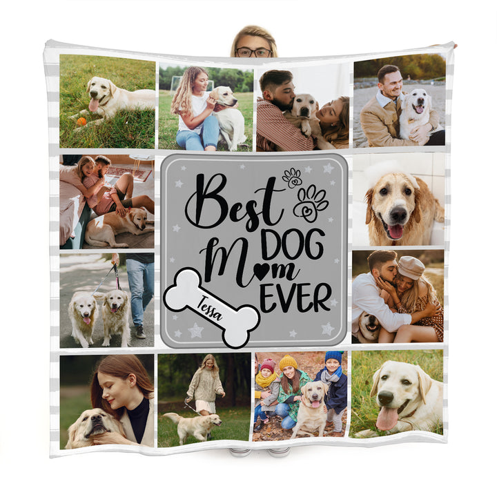 Best Dog Mum - Grey Stripe - 12 Photo - Personalised Fleece Blanket 150cm x 150cm