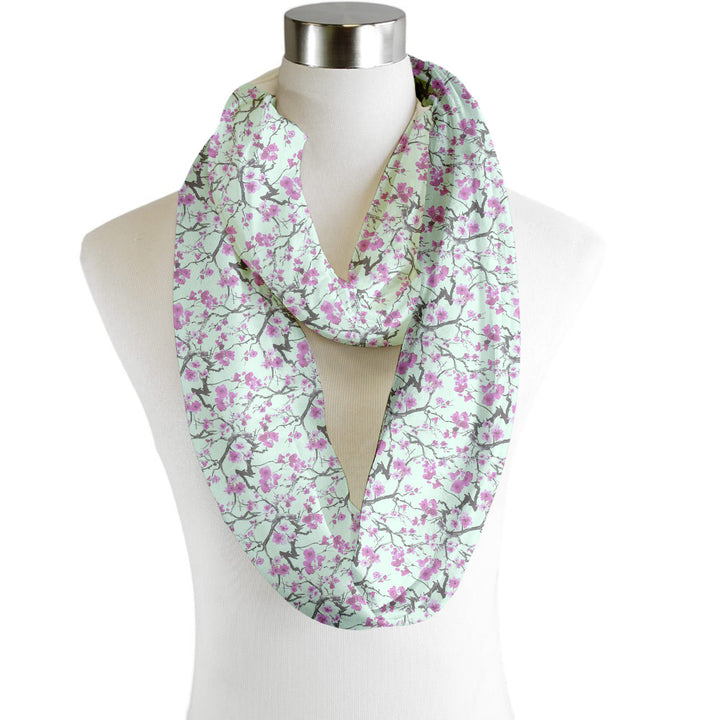 Cherry Blossoms - Mint Green - Scarf - Infinity - Chiffon