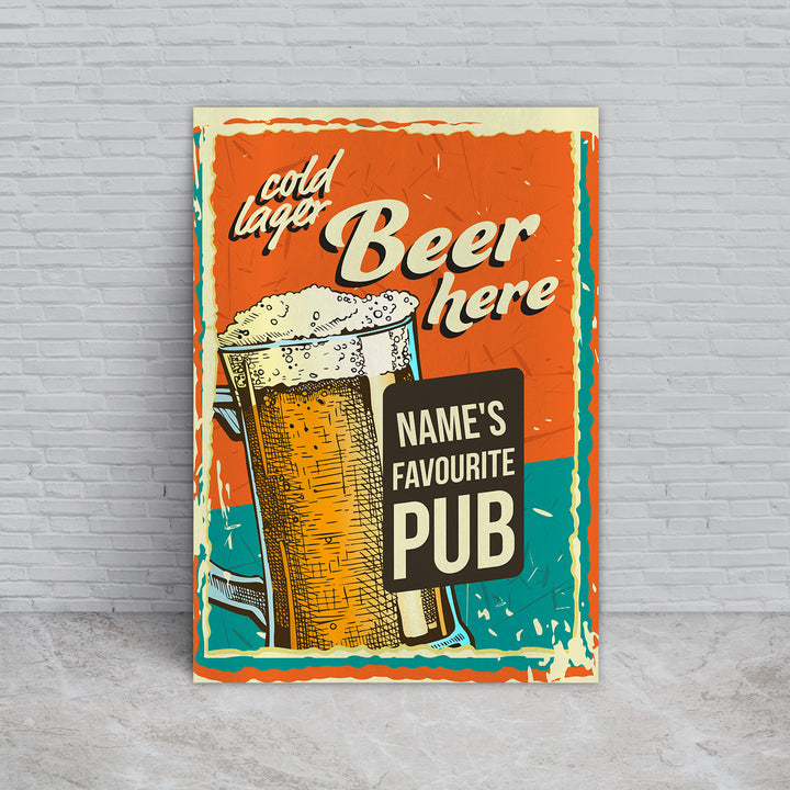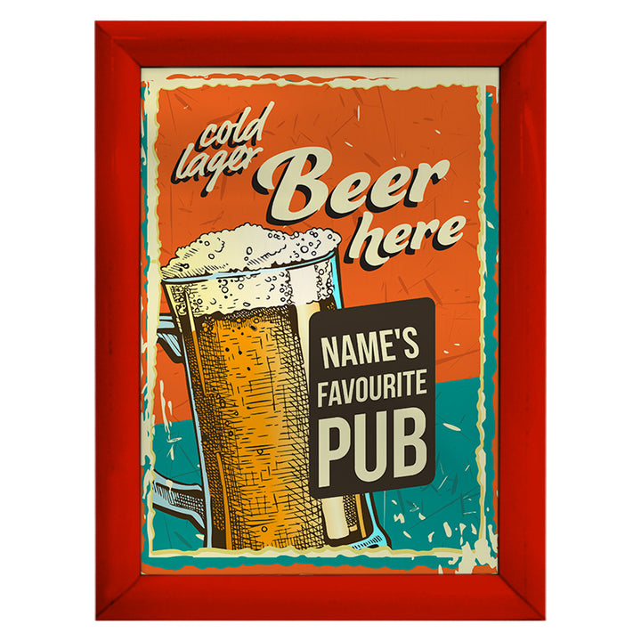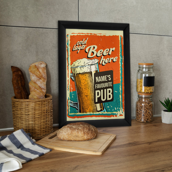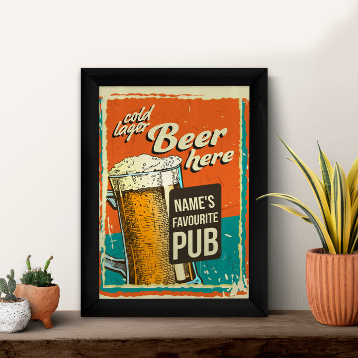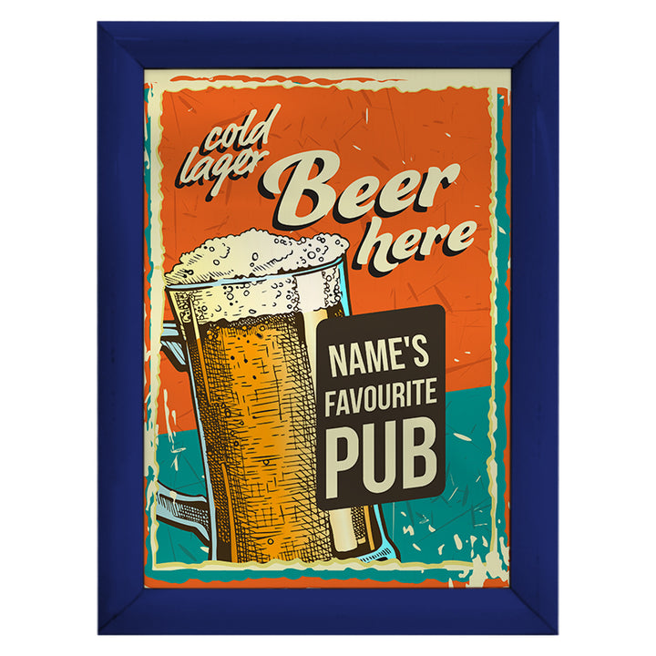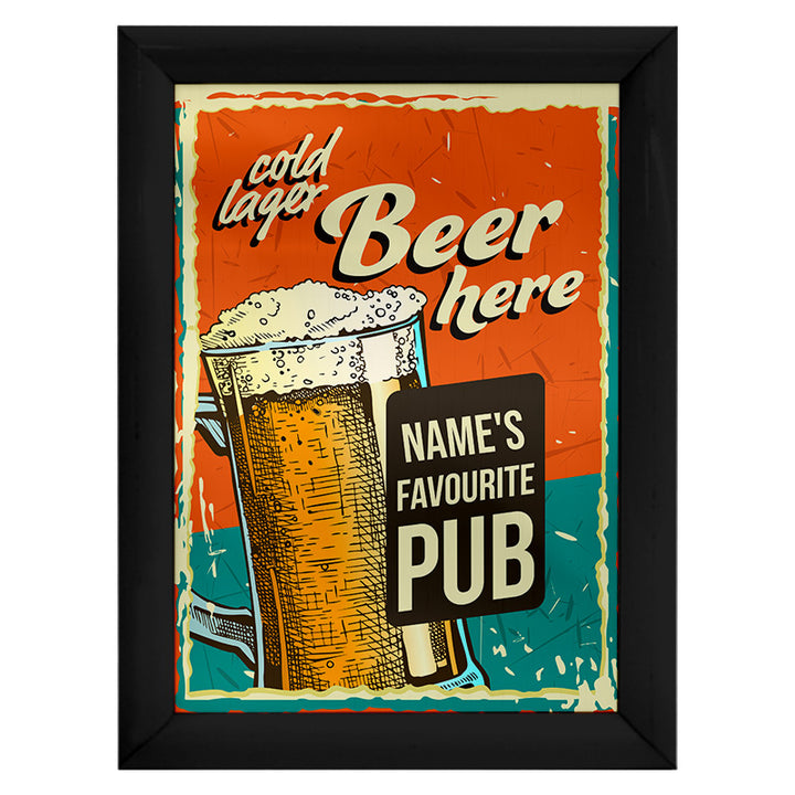 Personalised Cold Lager - A4 Metal Sign Plaque - Frame Options Available