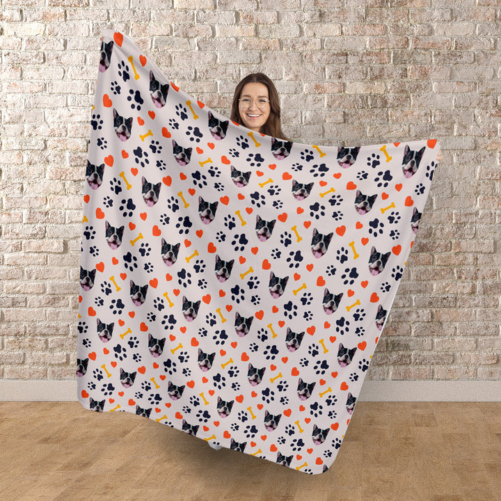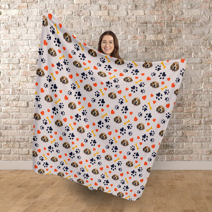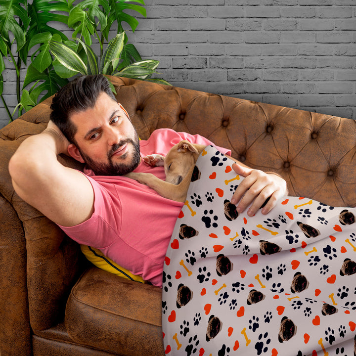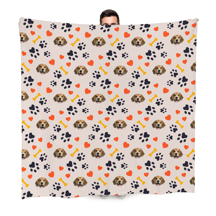 Pet Face Pattern - Neutral Paw & Bones Print - Fleece Blanket 150cm x 150cm
