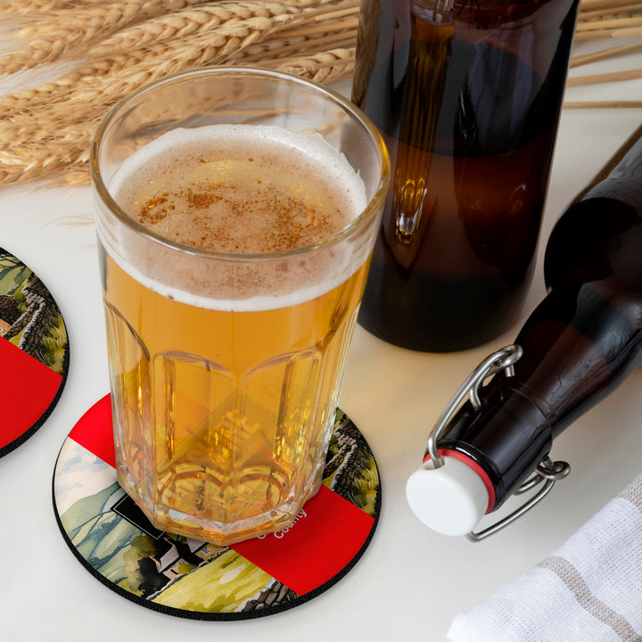 Crafted from high-quality washable polyester fabric, and neoprene base this coaster not only protects your surfaces from condensation and spills but also serves as a stylish accent piece for your home or office, which will last for years to come!