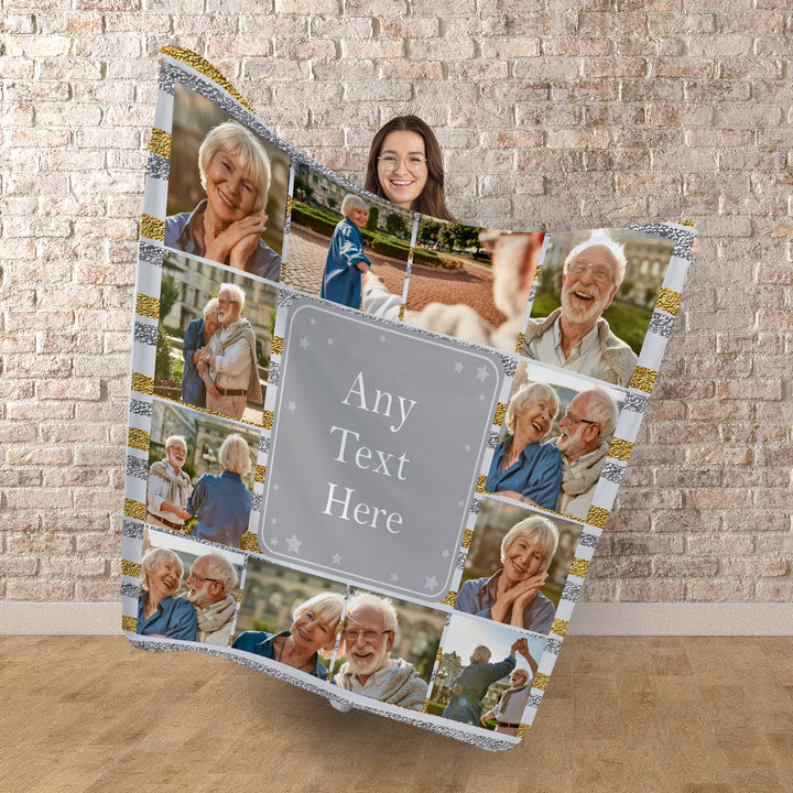 Printed Glitter Stripe - 12 Photo - Personalised Fleece Blanket