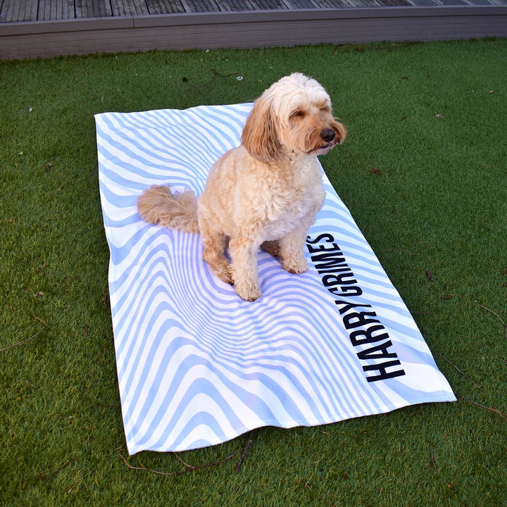 Our custom beach towels are handcrafted here in the UK using 300gsm microfibre towelling, which is lighter and more absorbent than cotton towels.