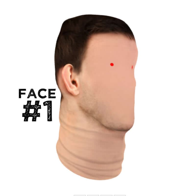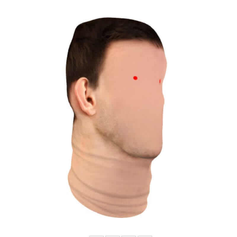 On every Faceskin template are two red dots. These red dots are set up to create the right scale so when you wear the mask, they look realistic. They don't need to be lined up perfect but will look better if you have each eye covered by a red dot.