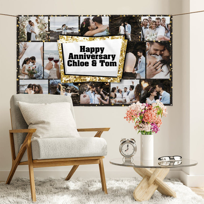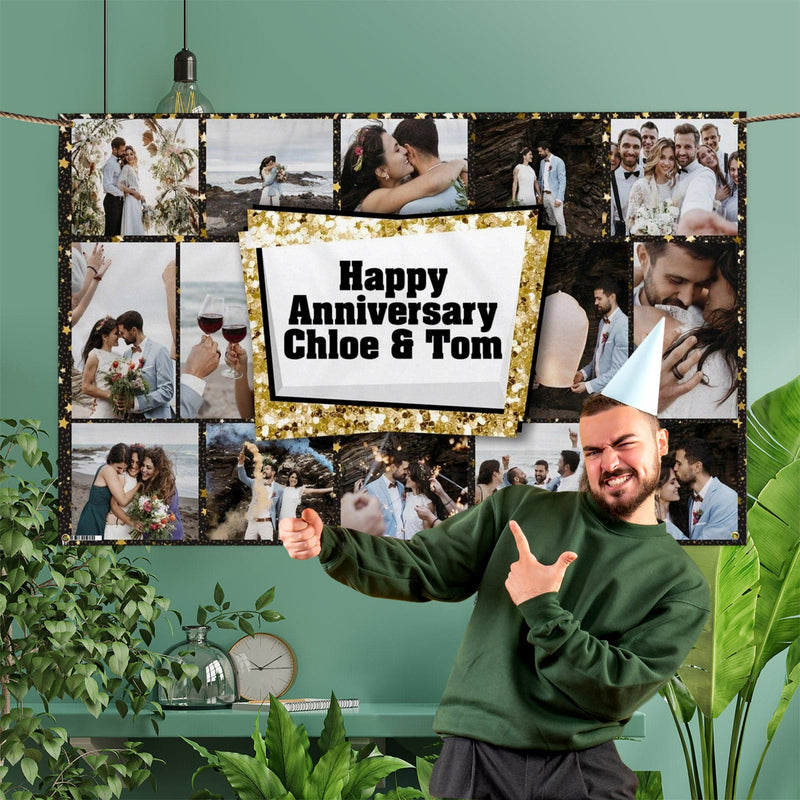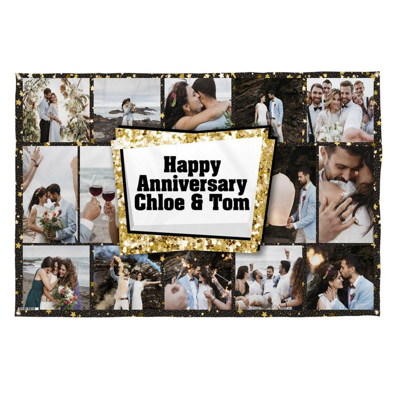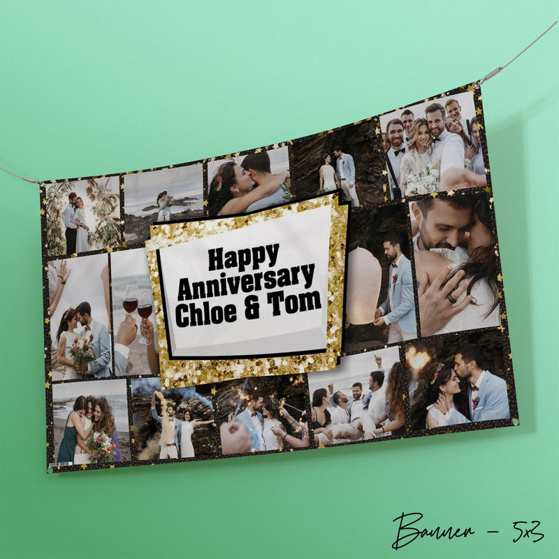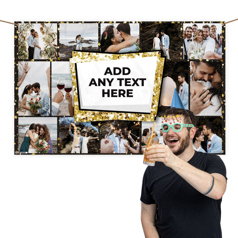 This personalised gold sparkle photo banner is a great addition to your upcoming event! Suitable for any occasion, you can edit the text to reflect your celebration or share a personal message and add your most cherished photos.