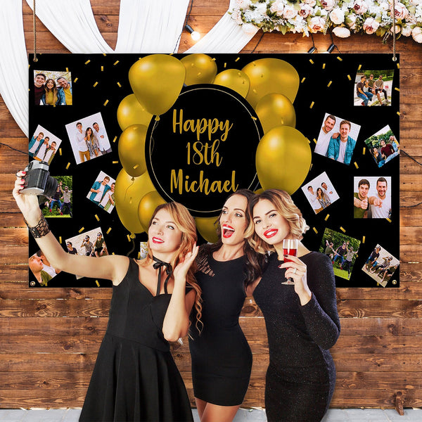 Fabric Any Occasion Photo Banner - Gold Glitter - Edit Text - 3 Sizes