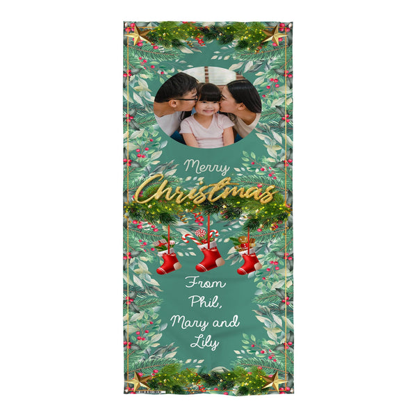 Personalised Text - Red 12 Photo - Christmas Door Banner