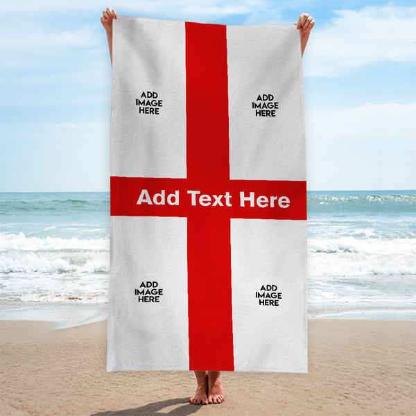 England St George - Add Crests and Text - Personalised Lightweight, Microfibre Beach Towel - 150CM X 75CM