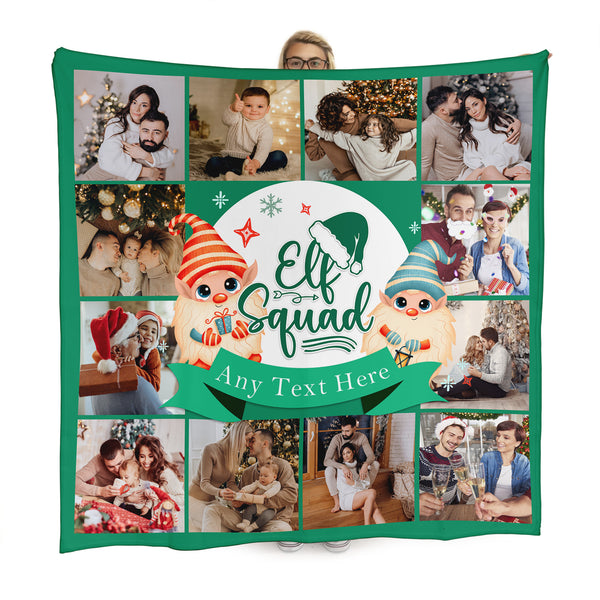 Christmas Elf Squad - 12 Photo - Personalised Fleece Blanket