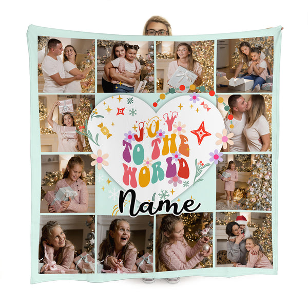 Christmas Joy To The World - 12 Photo - Custom Colour Personalised Fleece Blanket