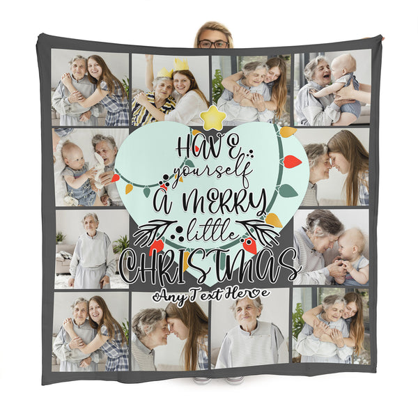 Merry Little Christmas - 12 Photo - Custom Colour Personalised Fleece Blanket