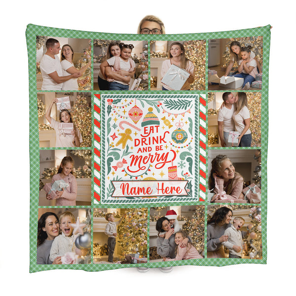 Christmas Drink & Be Merry - 12 Photo - Personalised Fleece Blanket