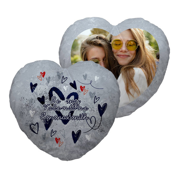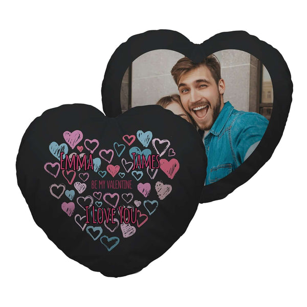 Be My Valentines - Black Heart Shaped Photo Cushion