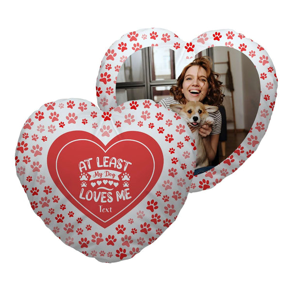 At Least My Dog Loves Me - Heart Shaped Photo Cushion
