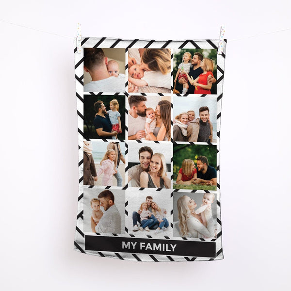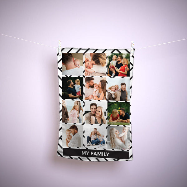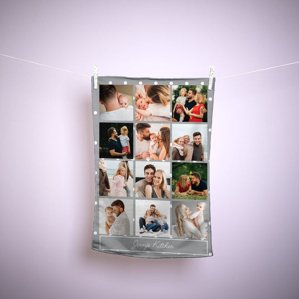 Monochrome - 12 Photo Personalised Lightweight, Microfibre Tea Towel