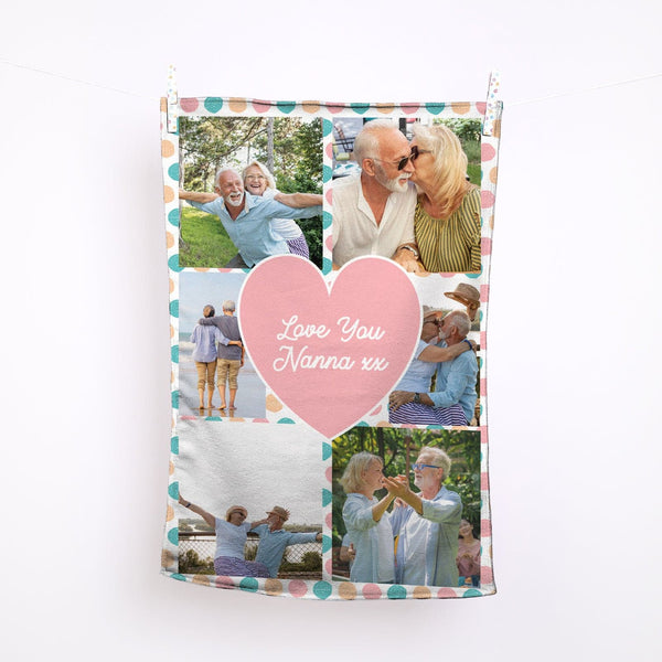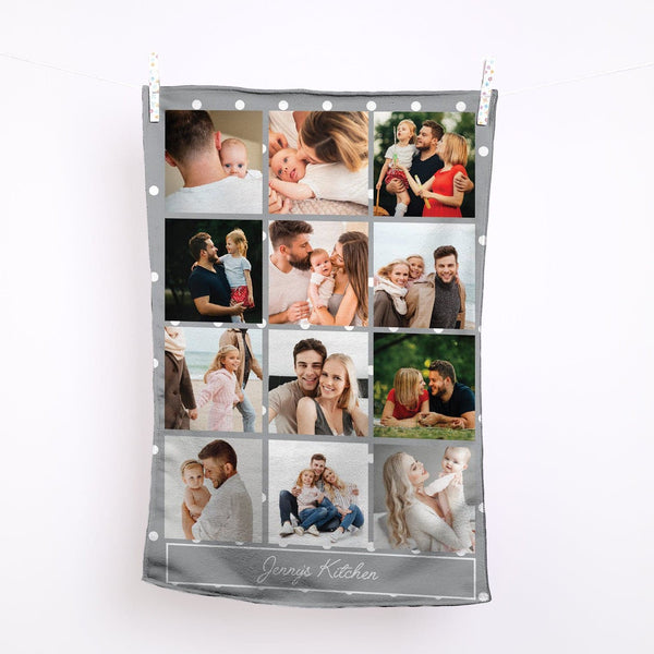 Grey Polka Dot - 12 Photo Personalised Lightweight, Microfibre Tea Towel