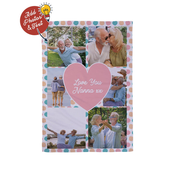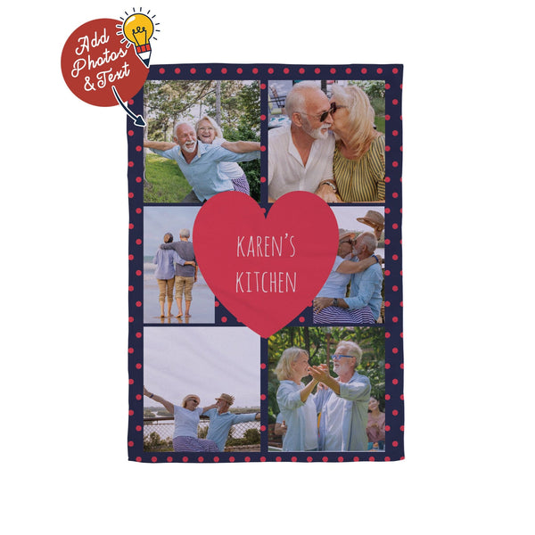 Scribble Polka Dot - 6 Photo Personalised Lightweight, Microfibre Tea Towel
