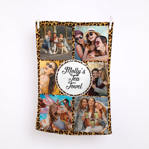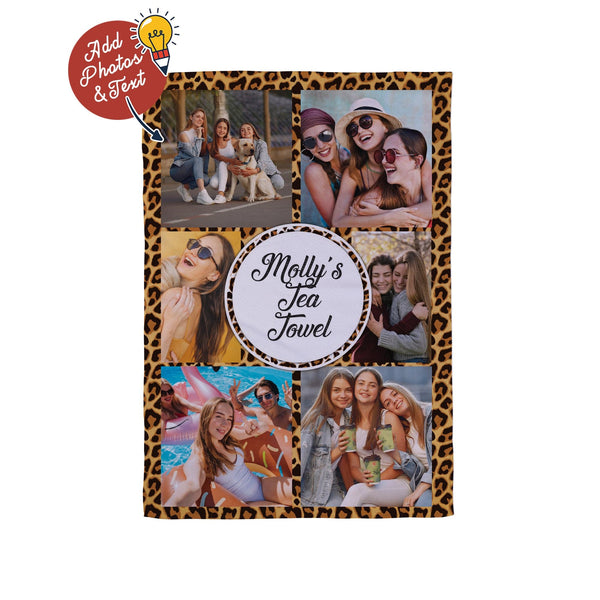 Leopard Print - 6 Photo Personalised Lightweight, Microfibre Tea Towel