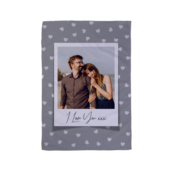 Grey Hearts - 1 Photo Personalised Lightweight, Microfibre Tea Towel