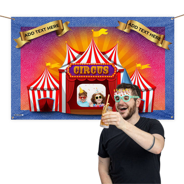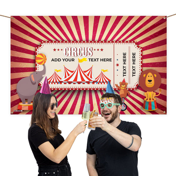 Personalised Text - Circus Ticket - Party Banner- 5ft x 3ft