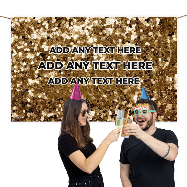Personalised Any Text - Gold Printed Glitter Party Backdrop - 5ft x 3ft