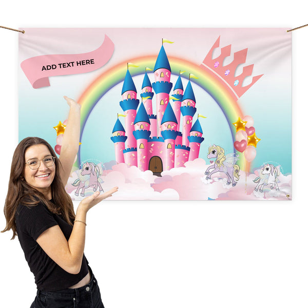 Personalised Text - Princess Party Backdrop - 5ft x 3ft