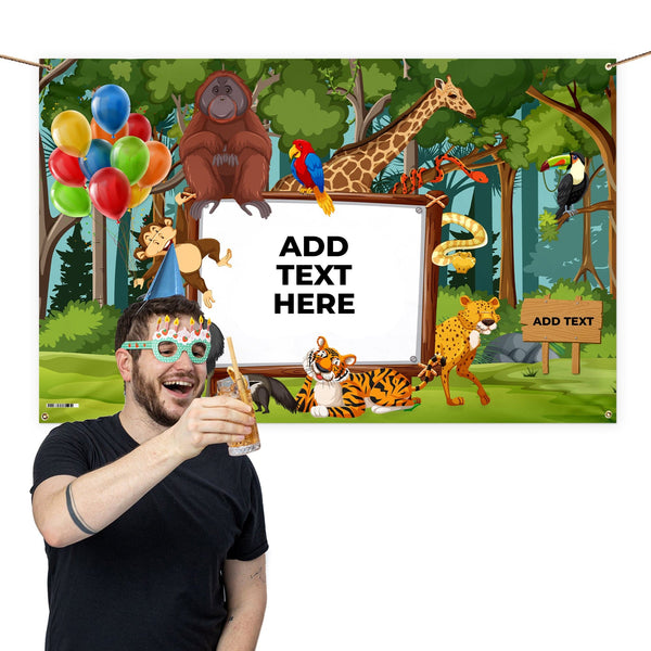 Personalised Text - Jungle Party Fabric Banner - 5ft x 3ft