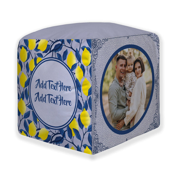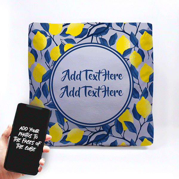 Personalised Lemon Print Photo Cube Cushion - Two Sizes