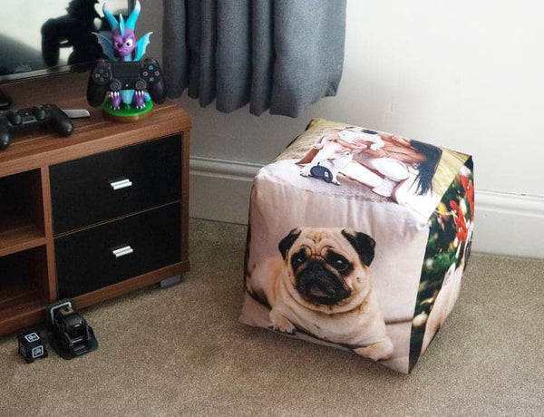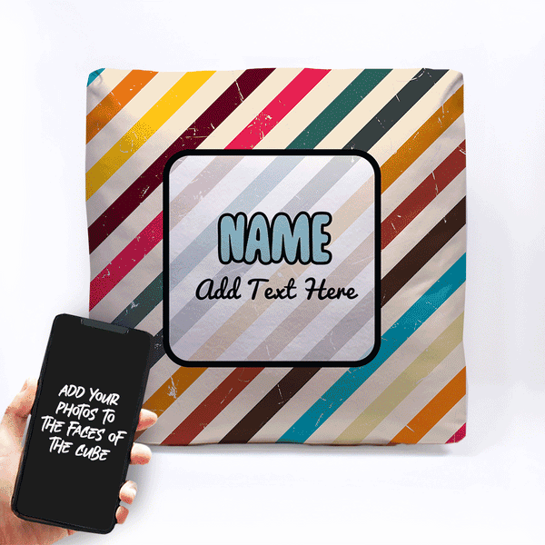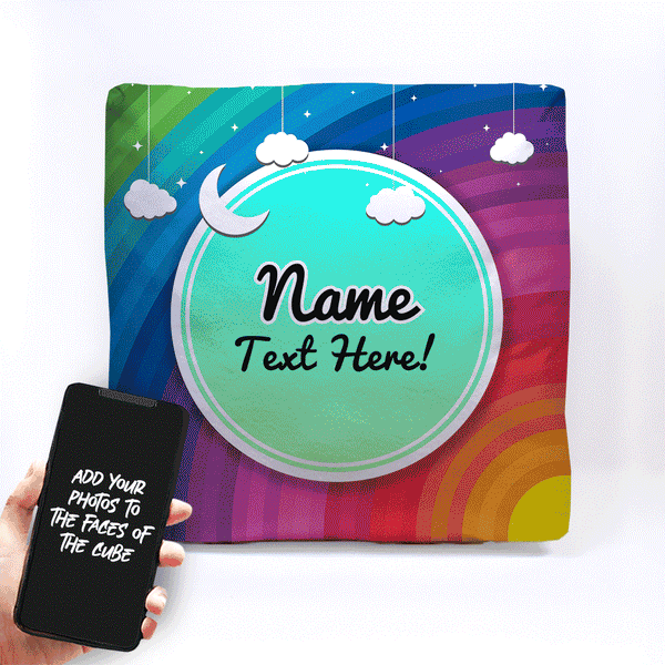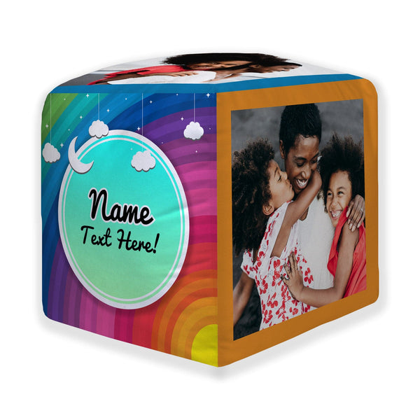 Personalised Rainbow Photo Cube Cushion - Two Sizes