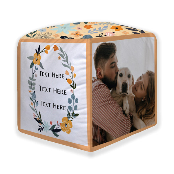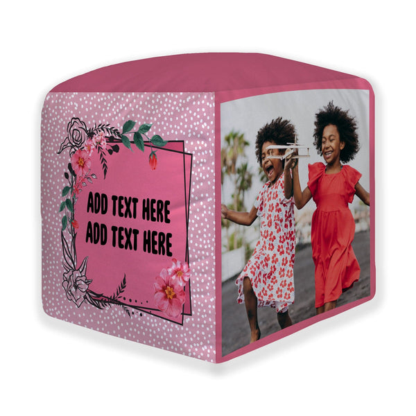 Personalised Floral Photo Cube Cushion - Two Sizes