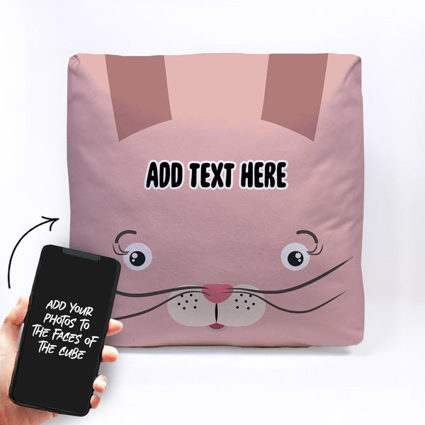 Personalised Rabbit Photo Cube Cushion - Two Sizes